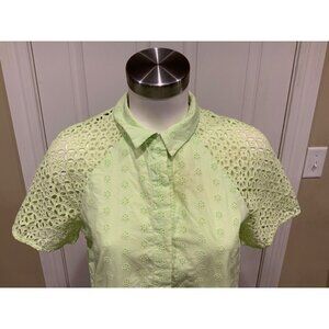 J. Crew Light Lime Green Floral Eyelet Collared Button-Up Shirt Dress, Size 6 US