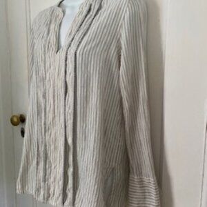 J. Crew Light, Long Sleeve V-Cotton Shirt, Gray, White and Black, Size S