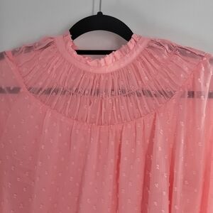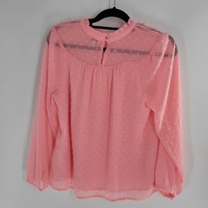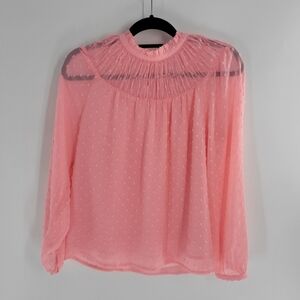 J. Crew Light Pink Long Sleeve Clip - Dot Smocked Top Size S