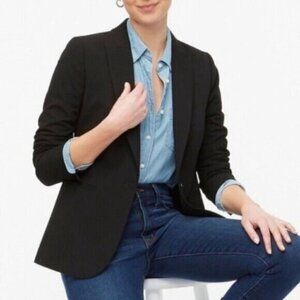 J. Crew Women's Black Wool Blend Blazer Pocketed Darted Notched Collar Button Long Sleeve Jacket