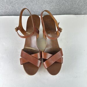 J. Crew Lila Platform Wedges Sandals Shoes Ankle Strap Leather Brown Sz 11 Italy