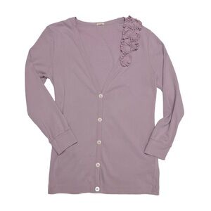 J Crew Lilac Flower Embellished Long Sleeve Button Front Cardigan Sz M