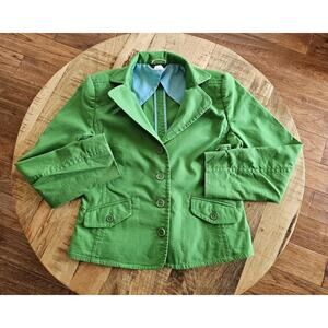 Beautiful green blazer lightweight and very comfortable. This is in excellent condition and comes from clean and smoke free home. Please see photos for measurements and details.