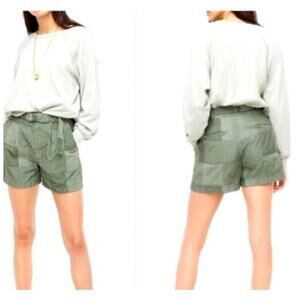 . Varying sage green colors make up the unique patchwork design of these shorts! 100% cotton material, very comfortable! Excellent reviews online, this was a limited edition piece, no longer sold. There is another label inside the shorts that says "Re-Imagined by J.Crew Inspired by the Planet and it's People".