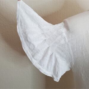 A crisp, elevated basic for the colder months, this top offers a minimalist silhouette with a subtle winter softness. The lightweight semi-sheer linen and structured bell sleeves create an effortless layering piece. Perfect under cardigans, blazers, or a tailored coat. A refined essential for building sleek, modern winter outfits.