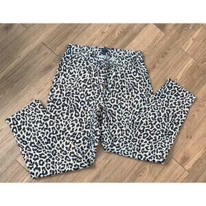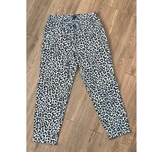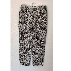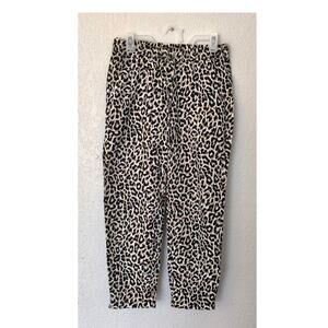 J. Crew Linen Blend Animal Print Crop Ankle Pull On Pants Sz 6 Black Tan