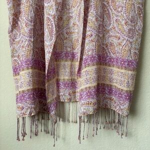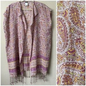 J. Crew Linen Blend Boho Paisley Printed Fringe Trim Beach Poncho Swim Cover Up