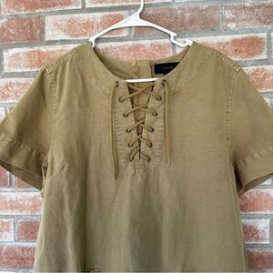 J. Crew Linen Blend Canvas Shift Dress Women’s Plus 16 Khaki Tan Lace Up Neck