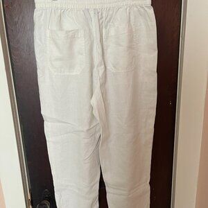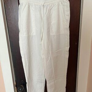 J Crew Women's Medium White pull-on drawstring linen-blend cropped pants