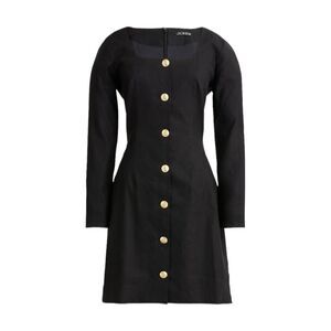 tags: work career office business casual traditional timeless capsule modern academia preppy casual dressy classic classy preppy work lunch date versatile gold buttons linen blend neutral contemporary statement long sleeve Boss sexy LBD 90s 80s