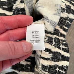 J Crew Linen Blend Drawstring Pants Womens Size 4 Black & Cream Ikat Print