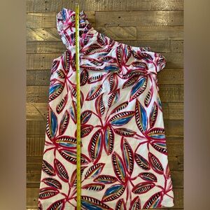 J. Crew One Shoulder Linen Blend Dress Size Small-colorful leaf design-lined-excellent condition with no flaws!