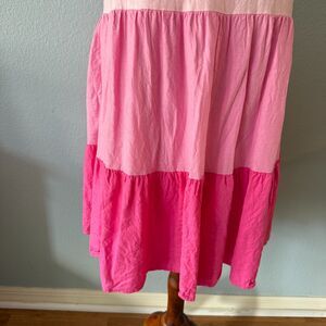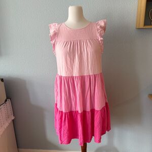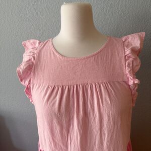 J. Crew Linen Blend Ruffle Sleeve Tiered Pink Mini Dress Size 2