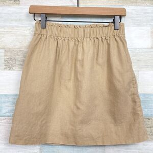 J Crew Linen Blend Sidewalk Mini Skirt Tan Elastic Waist Pull On Casual Womens 0
