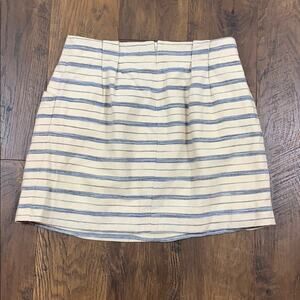 J Crew Linen Blend Striped Cream/Navy Mini Skirt