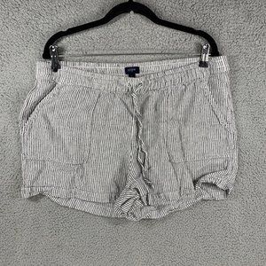 J. Crew Linen Blend Striped Shorts Women’s Large L Black White Stretch Waist