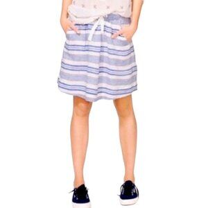 J. Crew Linen Blue White Stripe Drawstring Mini Skirt