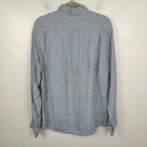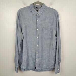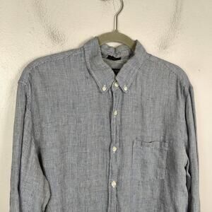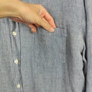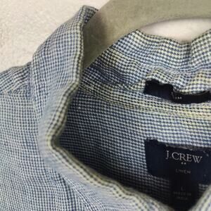 J Crew Linen Button Down Shirt Mens Large Blue Micro Check Lightweight Preppy