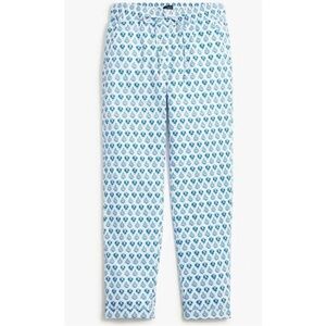 J. Crew Linen Cotton Drawstring Block print easy pants Malibu blue & white NEW
