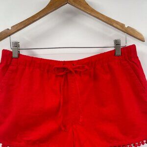 J. Crew Linen Cotton Drawstring Pom Pom Shorts Small Red 3" Inseam Drawstring