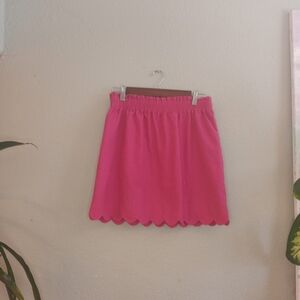 J Crew Linen Cotton Scallop Hem Hot Pink Paperbag Waist Lined Casual Boho Skirt