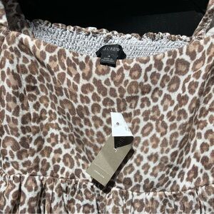 J Crew Linen Cupro Leopard Print Puff Sleeve Dress women’s size 4