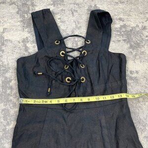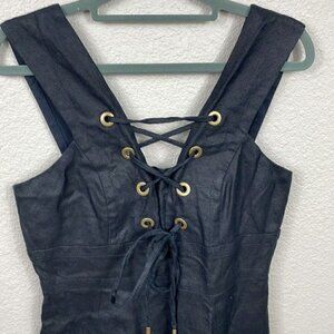 J Crew Linen Lace Up Tie Black Mini Dress Sleeveless V Neck LBD Sz 4