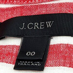This J Crew linen red and white striped button-up shirt offers a classic design with functional chest pockets. Its lightweight material is ideal for all-day wear.