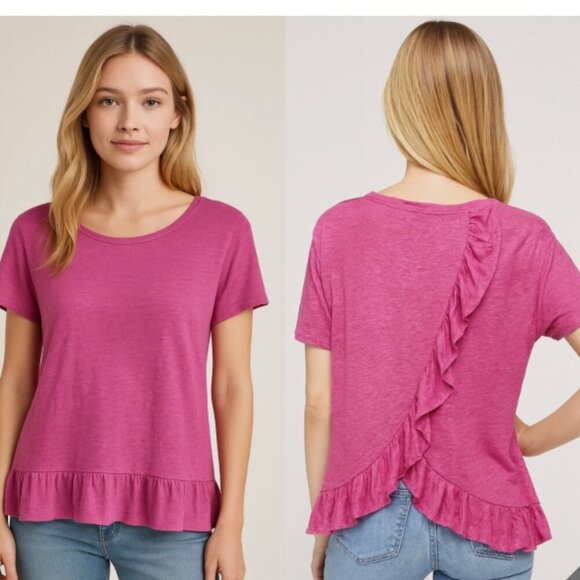 J. Crew Linen Ruffle Back Short Sleeve Top Tee - NWT