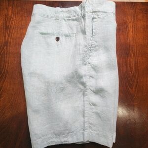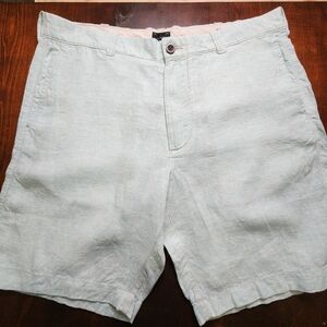 J Crew Linen Shorts Men’s 35 Green White Striped 9” Inseam Casual Lightweight