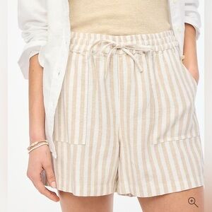 J Crew Linen Shorts White and Beige Stripes Drawstring NWT Pockets Women’s Size XXL