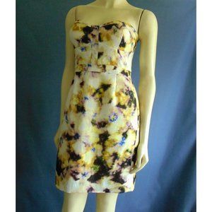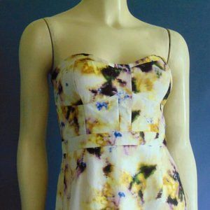 J. Crew Linen Silk Yellow Tie Dye Strapless Summer Dress 6