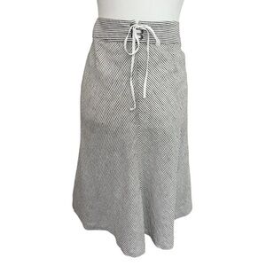 J. Crew Linen Size 4 Midi Sailor Button A-Line Skirt Striped Lace Up Back