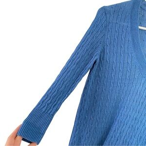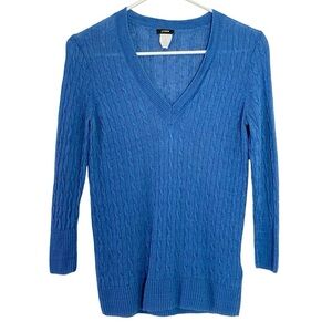 J Crew Linen Sweater Womens Size Small Blue Cableknit V Neck Jcrew J. Crew