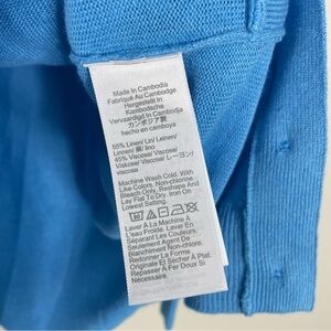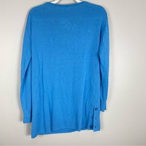 J. Crew Linen Sweater Womens Small V-Neck Long Sleeve Button Side Blue Preppy