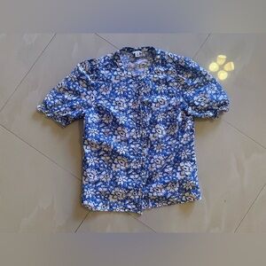 This casual button-down shirt features a vibrant blue and white floral pattern, perfect for a relaxed yet stylish look. The short sleeves and comfortable fit make it ideal for warm weather, while the intricate floral design adds a touch of vintage charm.