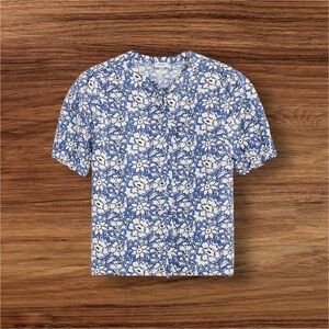 This casual button-down shirt features a vibrant blue and white floral pattern, perfect for a relaxed yet stylish look. The short sleeves and comfortable fit make it ideal for warm weather, while the intricate floral design adds a touch of vintage charm.
