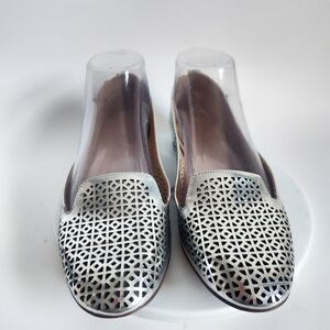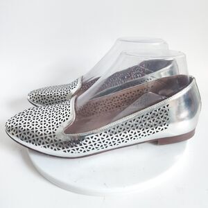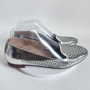 J Crew Loafers Size 6.5 Silver Metallic Slip On Flats Shiny Perforated Leather