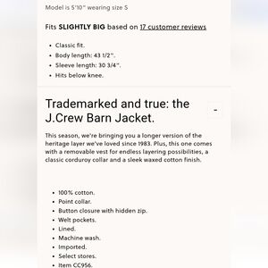 NWT, J.Crew Long Barn Jacket in Waxed Cotton Twill.
