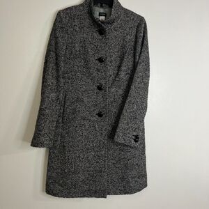 J. Crew Long Pea Coat Blazer Gray Black Wool Blend 4 Button Front Jacket Sz 6.