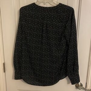 J Crew | Long Sleeve Blouse Black White Polka Dot 1/4 Button down Women’s sz S