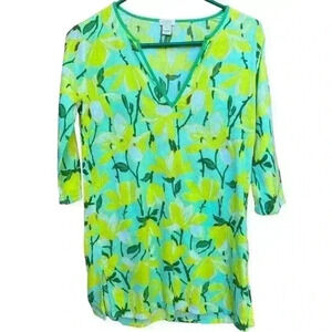 J. Crew Long Sleeve Bright Green/Yellow Floral Tunic Coverup SZ XXS Petite