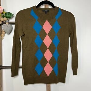 J Crew Long Sleeve Brown Argyle Crewneck Sweater Size XXS