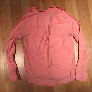 Pink / salmon, partial button down top. It has been worn once, and is in perfect condition (although wrinkled in the picture).