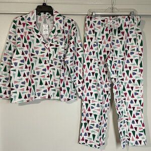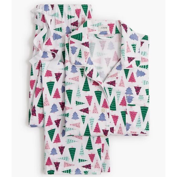 J. Crew Long Sleeve Flannel Holiday Print Pajama Sleep 2-Piece SET Size M Petite