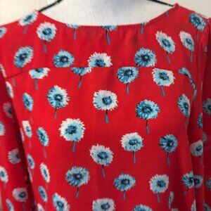J. Crew Long Sleeve Floral Red Blouse Size M