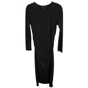 J. Crew Long Sleeve Sheath Midi Dress Jersey Crepe Black Ruched Stretch Medium