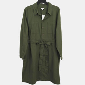 J Crew Long Sleeve Utility Shirt Dress Size 20 Olive Green Pockets Belt NWT