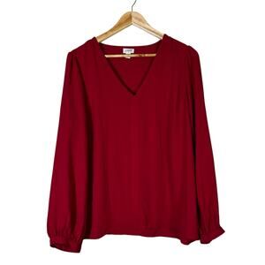 J. Crew Long Sleeve V-Neck Blouse Womens L Fuchsia Pink Feminine Career Classic