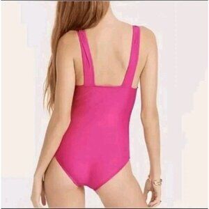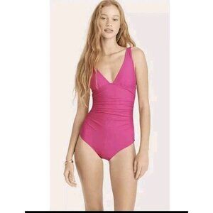 J. Crew Long-Torso Ruched V-neck One-Piece Swim Radiant Fuchsia Pink Siz 20 (855